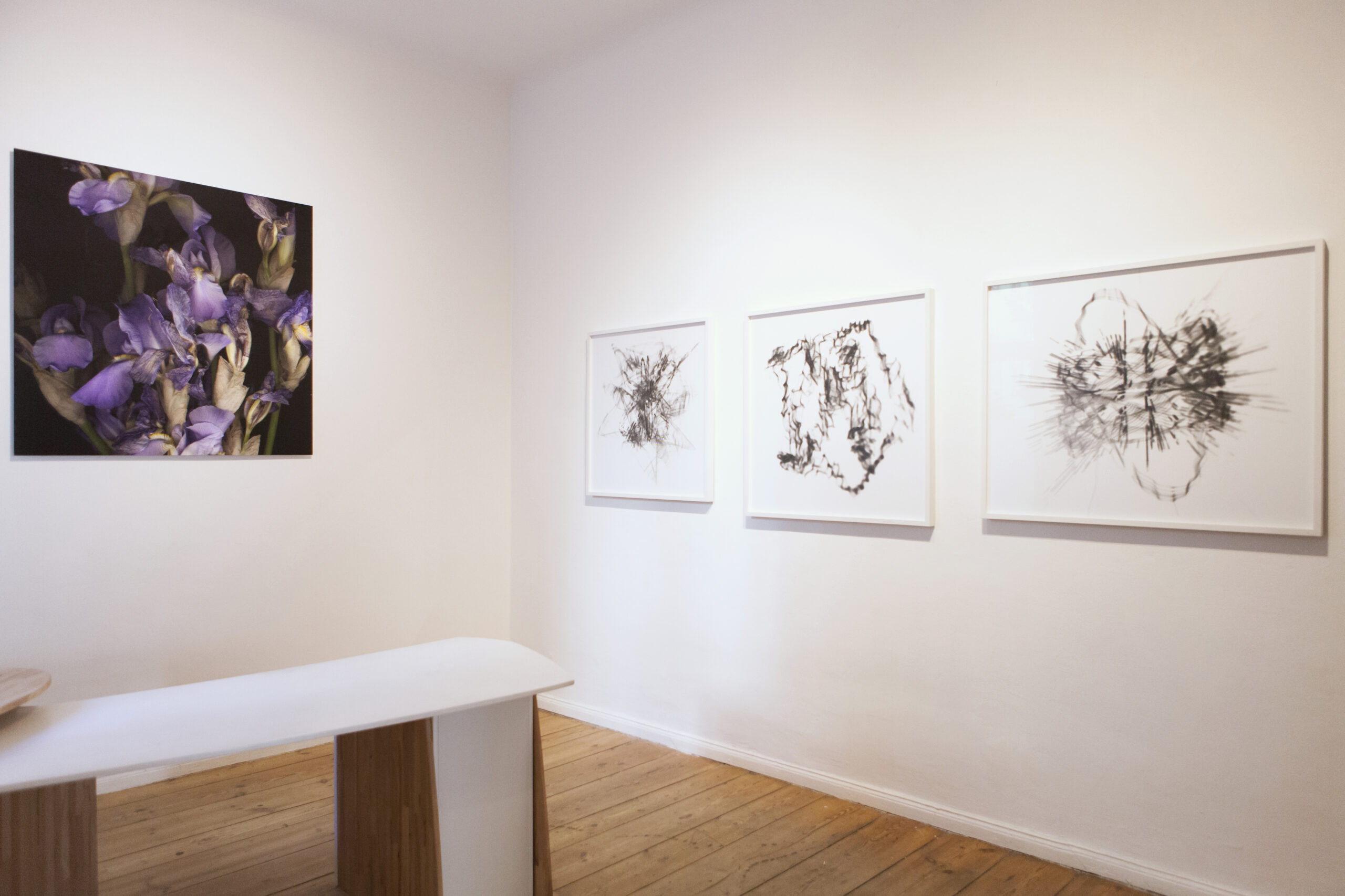 Even if the final result is easily mistaken with a classic photograph, both artist Antti Pussinen and Mathilde Nardone are not working with camera and lenses to create their art. Antti uses a personalized peculiar version of the ancient technique of Photogram to trap Lissajous curves onto photographic paper, and Mathilde composes her Nature Morte directly on the screen of a scanner. Antti transform the dynamic to static, while Mathilde catches the static and reveal its inner dynamic. One works in black and white, the other present the whole pompous color range of the floral world. The Finnish artist catches the unseeable frequencies waves and present them in their instantaneous forms of futuristic space design flavor, the Belgian artist picks carefully selected flowers to tell us about unknown stories out of her family history, facing themes concerning the whole humanity. In a way we could say that both artists are presenting the opposite of what at first seems: what looks like an abstraction is actually a tangible and unique shape of an existing matter, and what looks like a very recognizable form is actually a metaphysical metaphor. The contrasts are dramatic and yet harmonic, like a Tao including darkness and light in the dance of existence.