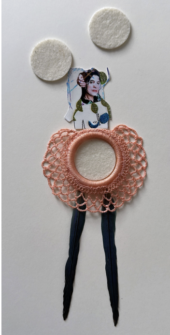 These collages are composed of selfie photo excerpts, my drawings, found objects, and / or ready-made materials. For now, these unique pieces are meant to be arranged in a set of 19 in a Salon hanging and, if presented, they are accompanied by a performance of mine.