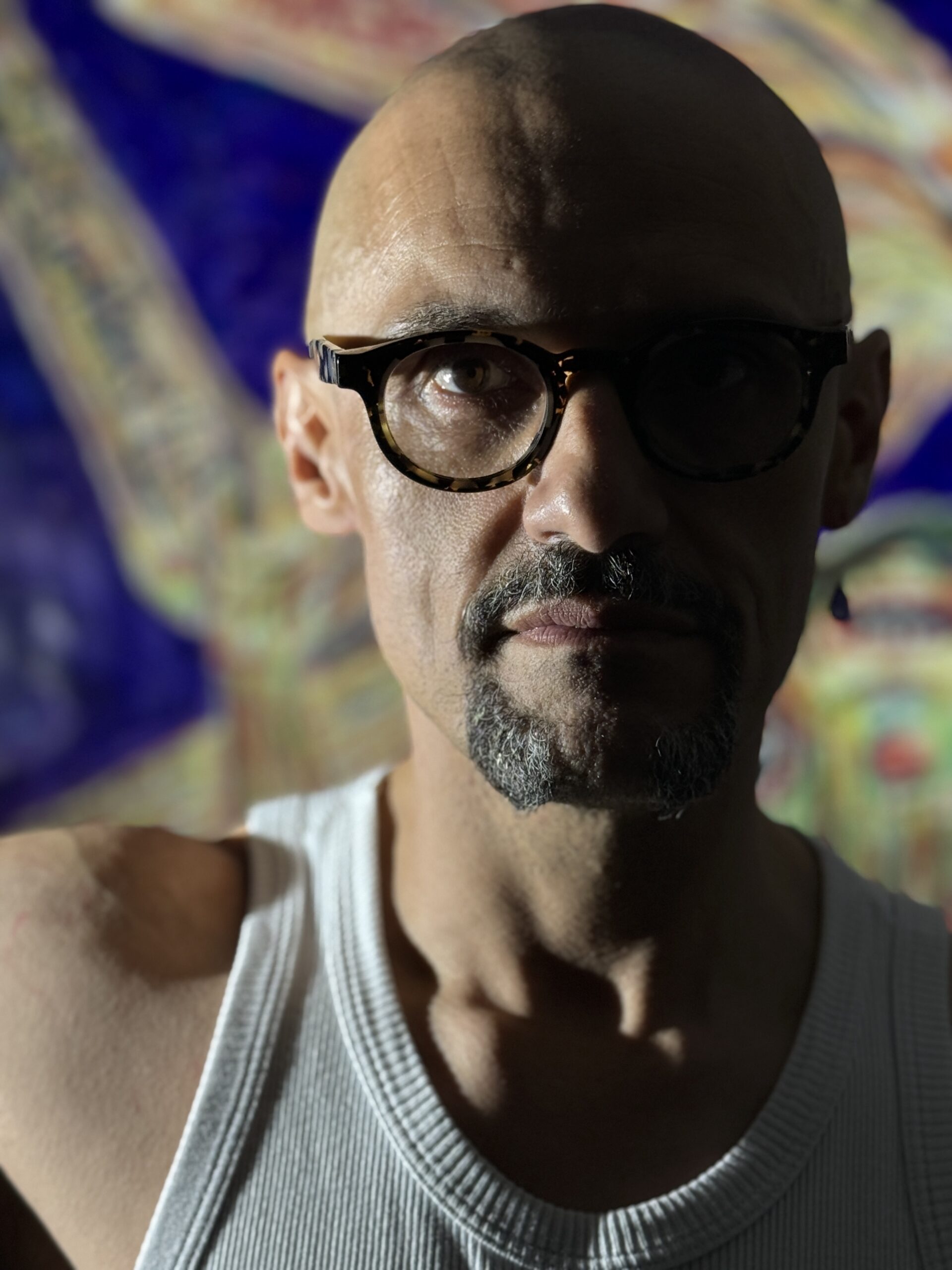 Lucas Goubert (born Marcos Rueda Goubert in Bogotá, 1973) builds his artistic practice on poetry—frequently his own verses serving as the foundation for visual art, installations, and performances. For him, the human body is both territory and cosmos: an endless source of inspiration, a living canvas, and the very medium through which he explores existence. In its curves, scars, and gestures, he discovers landscapes, myths, and the raw material of his work—a universe where poetry and flesh intertwine.