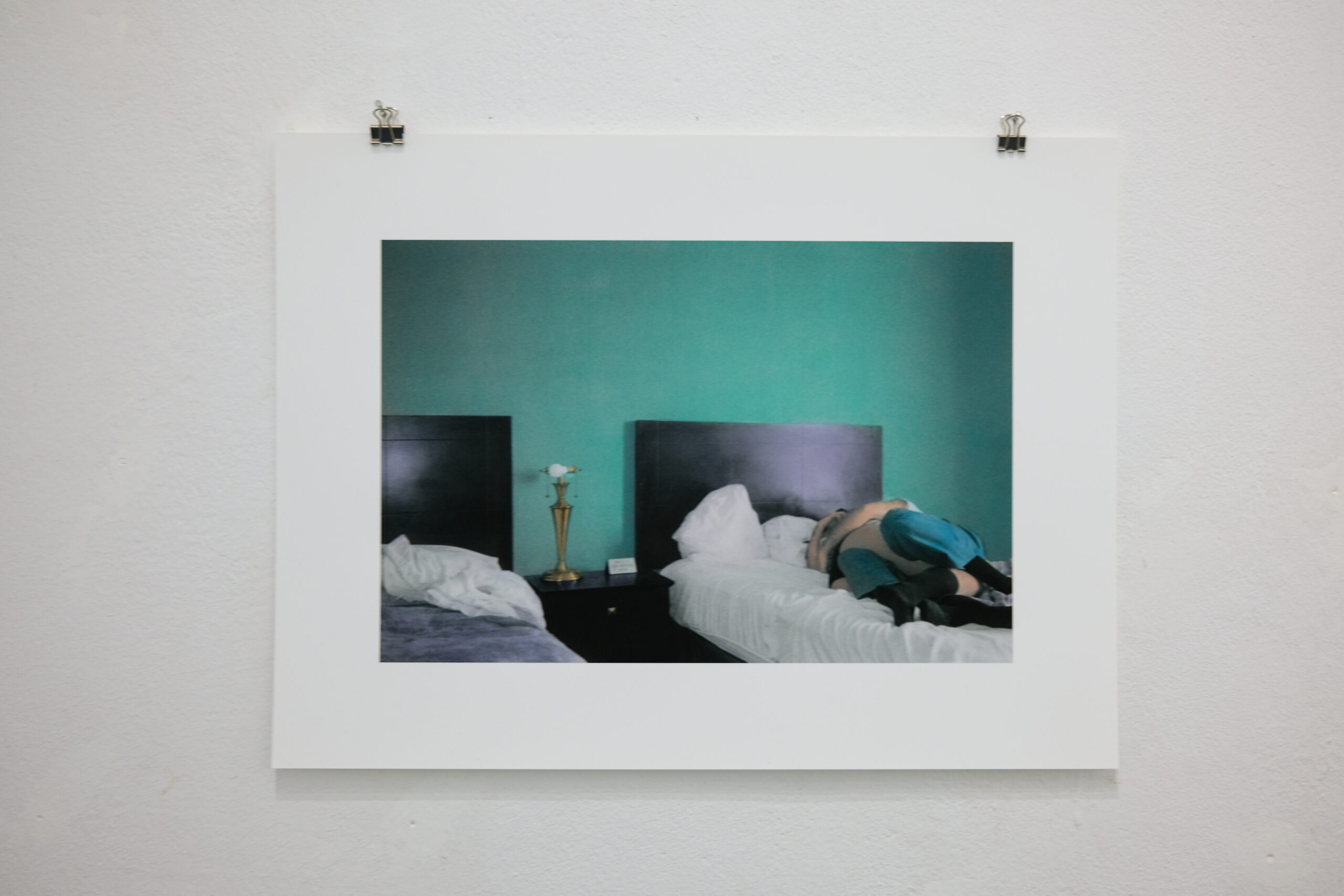 Motel 42 is also a celebration of self-discovery and love’s luminous moments — the quiet thrill of sharing a new place with someone dear, the way mundane settings like motel rooms become secret worlds made meaningful by the presence of another. There’s a tenderness in these images that transcends their solitary atmosphere: two bodies lightly resting on a bed, a soft gaze caught in the reflection of a mirror. It’s in these small, suspended moments that Eloïse Labarbe-Lafon’s work reveals a sense of hope and intimacy, showing how the most transient spaces can transform into sites of profound connection.