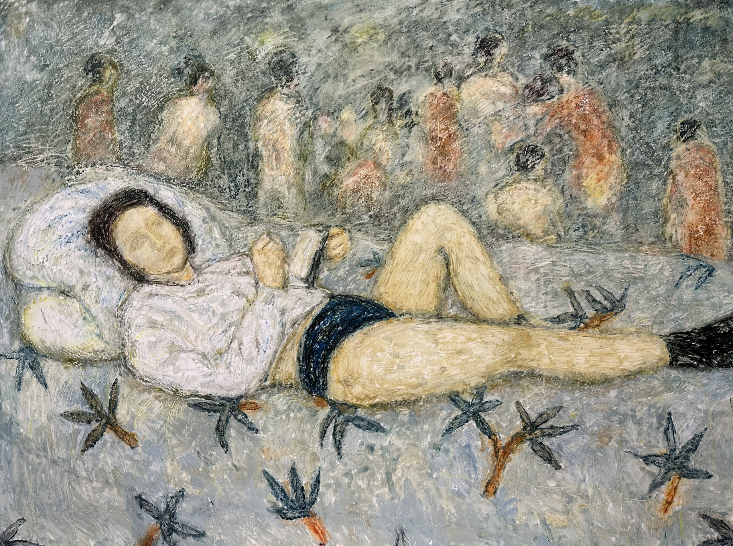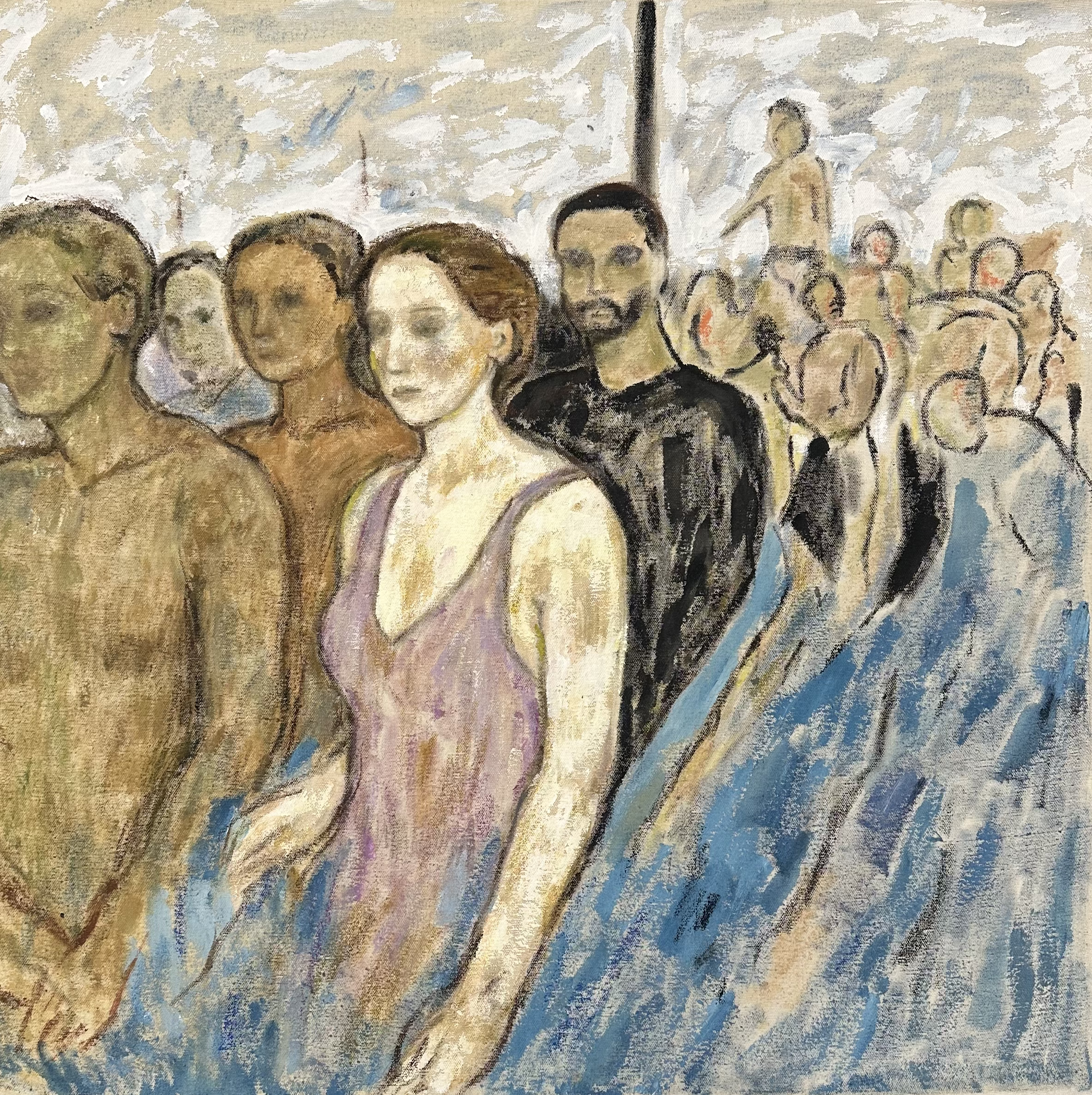 Yes, indeed the isolation played a pivotal role in my work. While I spent a lot of time in my studio, it led me to paint figures that were alone and isolated, even though I didn’t intentionally set out to do so. It was just the natural outcome of that period. In my recent works, however, there are many more people in each painting. I now explore how isolation can exist in a group, and these figures, though numerous, each seem to be experiencing their own form of solitude. This shift reflects my evolving perspective, where isolation is no longer just about the individual but also about the collective experience.