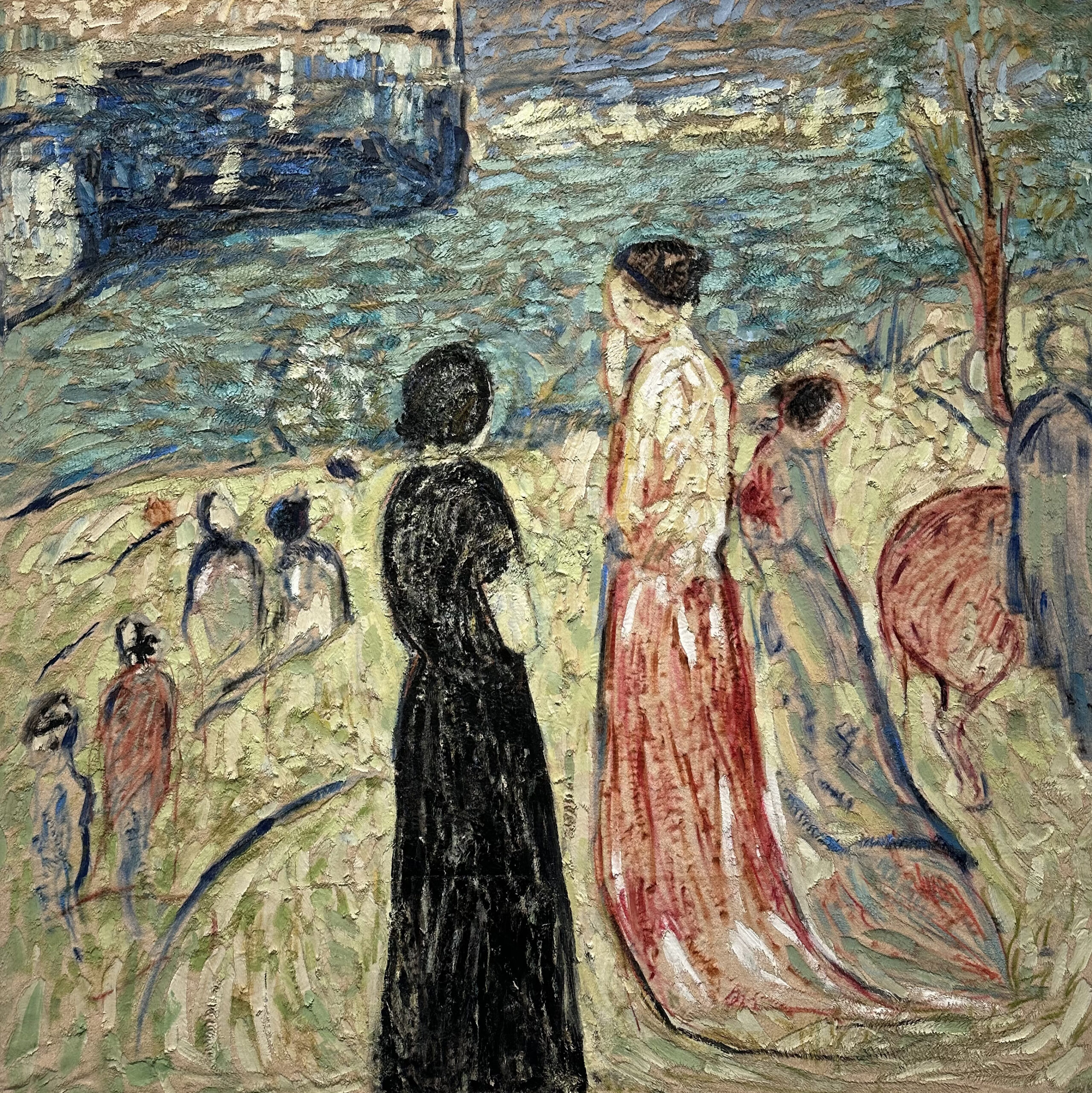 I admire the emotional intensity of Edvard Munch and the expressiveness of the Impressionists. While I don’t try to copy them, I connect with their ability to express raw emotions and create powerful atmospheres. In my work, I explore tension, duality, and the interplay of beauty and unease, using color and texture to create movement. Their influence encourages me to trust my instincts and let emotions guide my process.