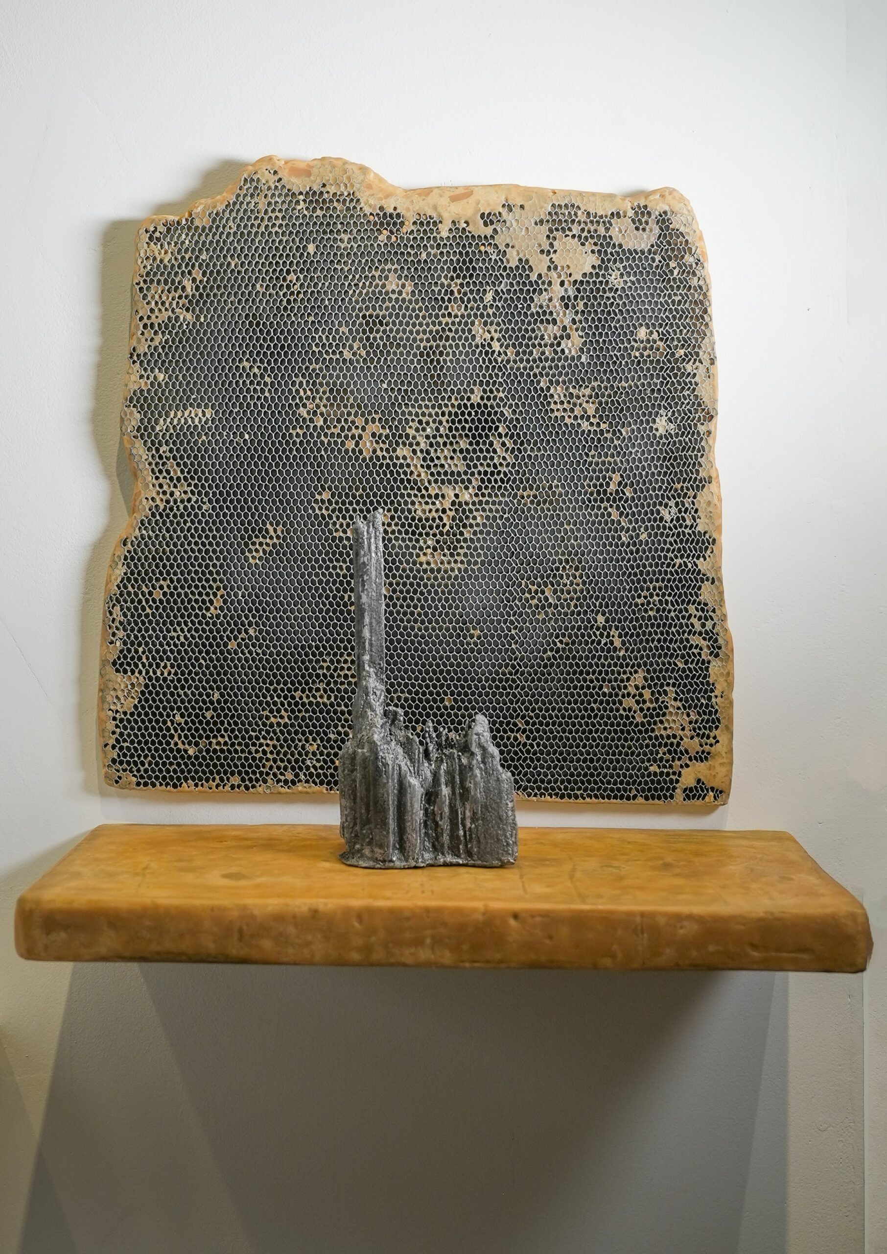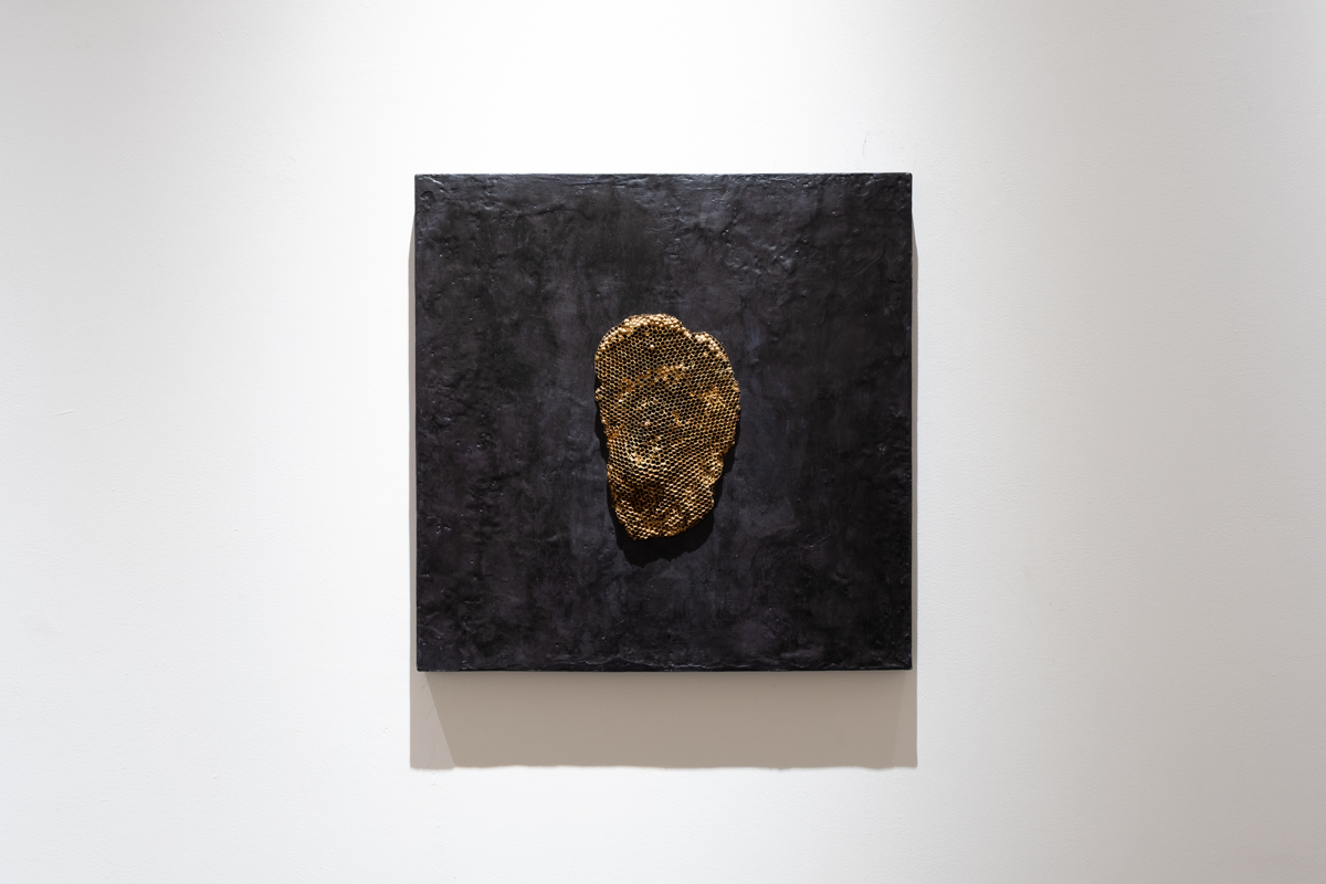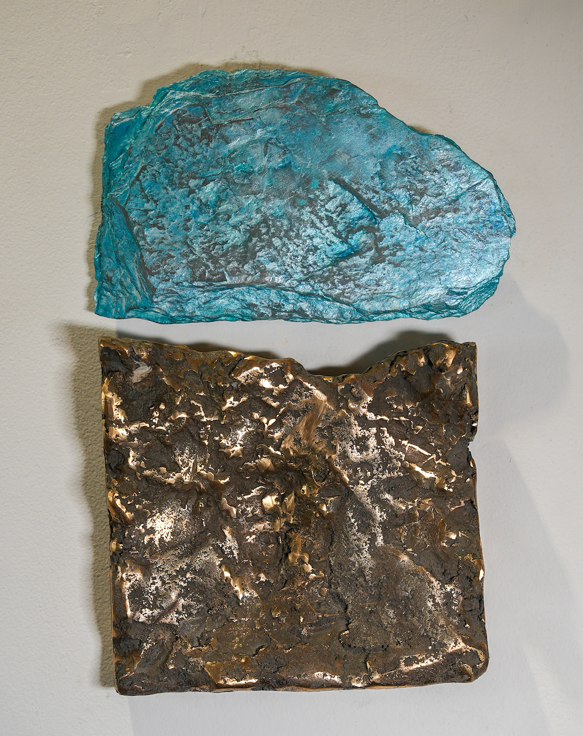In her art Shauna Peck uses of a variety of materials to show her insightful investigation of universal metaphors and contemporary narratives. Her art particularly emphasizes the interconnectedness between technology and the appropriated natural landscape, reflecting her deep engagement with these themes. She explores the intricate relationship between new technologies, the simulated world, and the disappearing natural landscape. Her work is characterized by a continuous experimentation with a variety of materials and mediums, which dominate the surface quality of her pieces. The sensuous nature of charcoal and the reflective attributes of metallic pigments accentuate her depictions of a vanishing environment. Peck’s attraction to using bee’s wax, bronze, and cement is driven not only by their tactile appeal but also by their symbolic significance. These materials serve to hermetically seal images from reality, conveying a desire to protect a vulnerable landscape. Often, she reveals only a glimpse of a landscape or form, highlighting the stark contrast between untamed wilderness and human development.